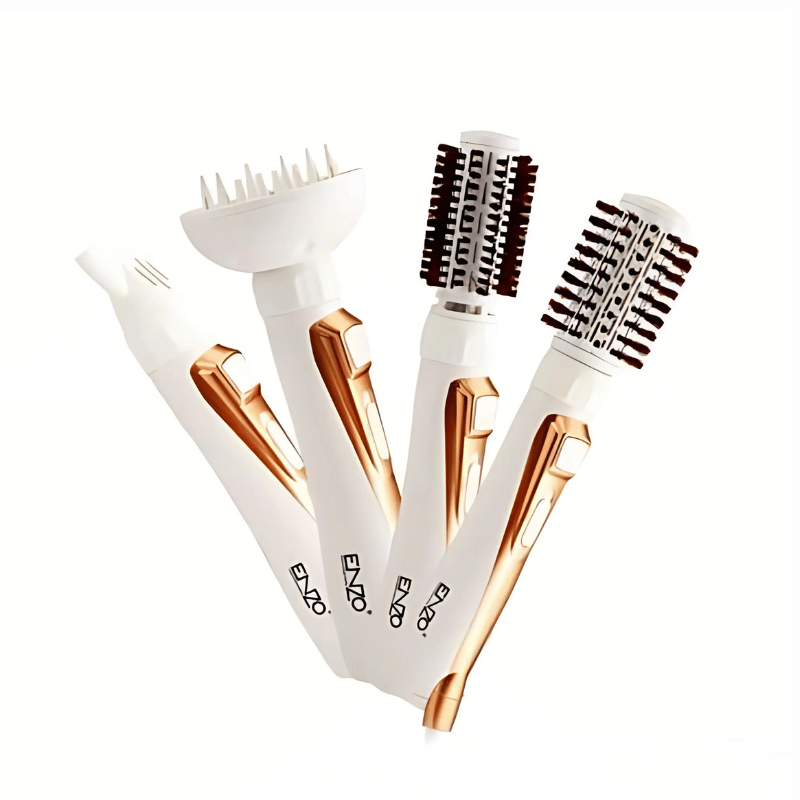 The ENZO EN-748 is a 4-in-1 styling tool that combines a hair dryer, volumizer, straightener, and curler in one device. It features an automatic rotating barrel that wraps your hair for easy styling and professional results. With ionic technology, it reduces frizz and static while adding shine and smoothness.