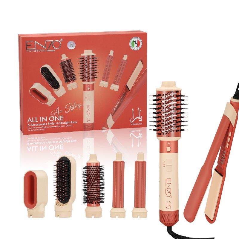 The ENZO EN-6601 7-in-1 professional air styling tool is a multi-function hair styler designed to combine drying, straightening, curling, and volumizing in one complete device. It includes multiple interchangeable attachments to support versatile styling with a single tool for everyday home use.