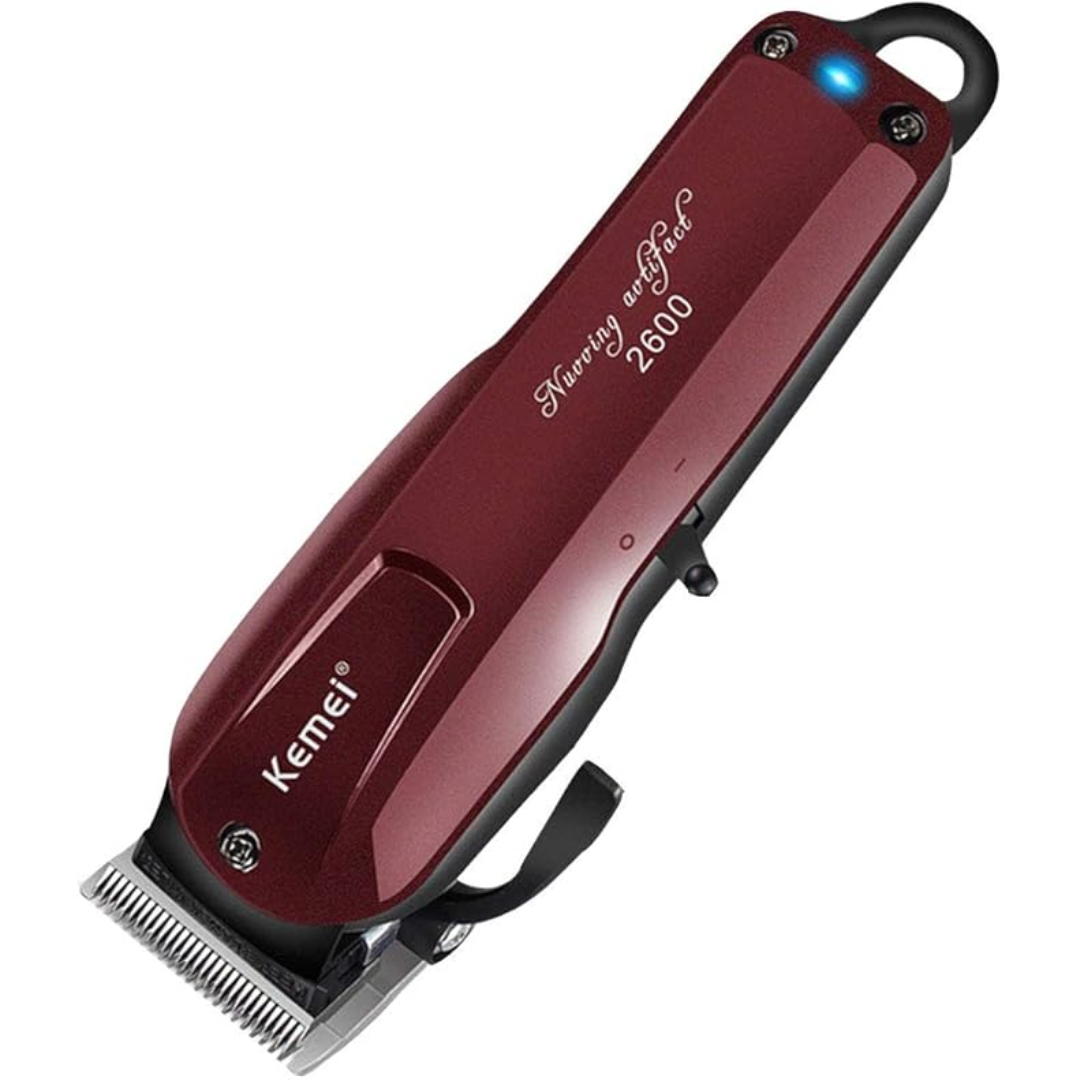Elevate your grooming experience with the Kemei KM-2600, a professional-grade cordless hair clipper designed for both barbers and home users. Featuring a powerful 9W motor and a high-capacity 2200mAh lithium-ion battery, this clipper delivers up to 120 minutes of continuous use on a single charge. The adjustable stainless steel blade ensures precise cuts, while the ergonomic design provides comfortable handling during extended use.