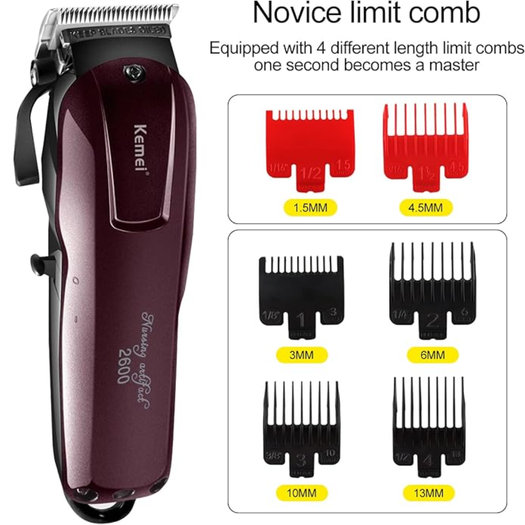 Kemei KM-2600 Professional Cordless Hair Clipper – 9W Motor, 120-Min Runtime, Adjustable Blade