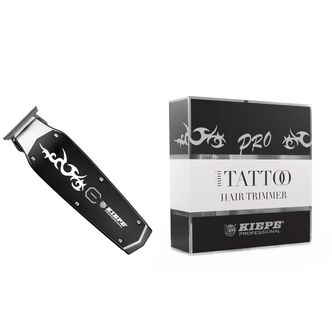 The Kiepe Tattoo Mini Trimmer is a cordless professional grooming tool designed for precision detailing and hair design. It is equipped with 360° exposed T-shaped blades that enable the creation of fine lines and detailed patterns. The trimmer is powered by a high-performance DC motor that provides consistent operation. A lithium-ion battery supports extended cordless use and recharges quickly.