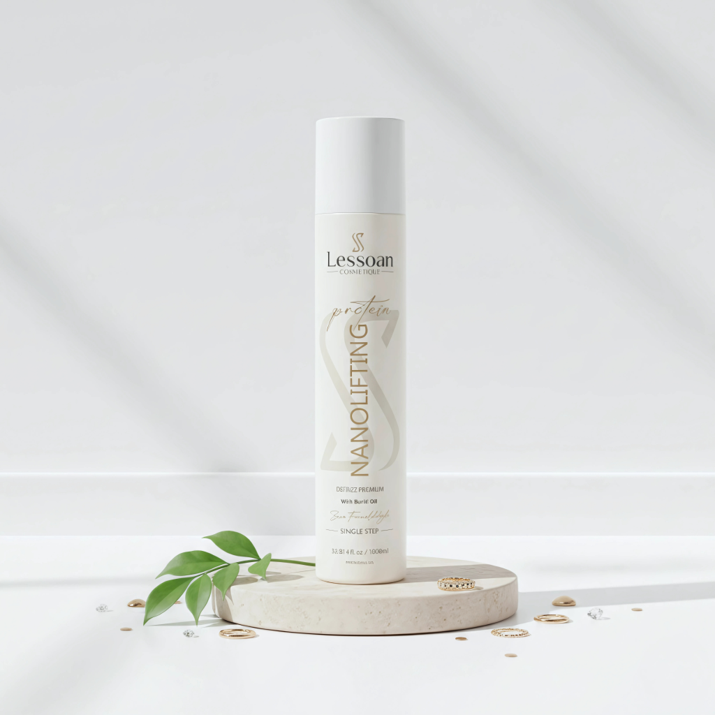 Lessoan Organic Protein Hair Treatment is a formaldehyde-free smoothing and volume-reducing treatment suitable for all hair types, including virgin and chemically treated hair. The formula is designed to reduce frizz, provide deep hydration, and reconstruct hair fibers, leaving hair smooth, manageable, and naturally healthy.