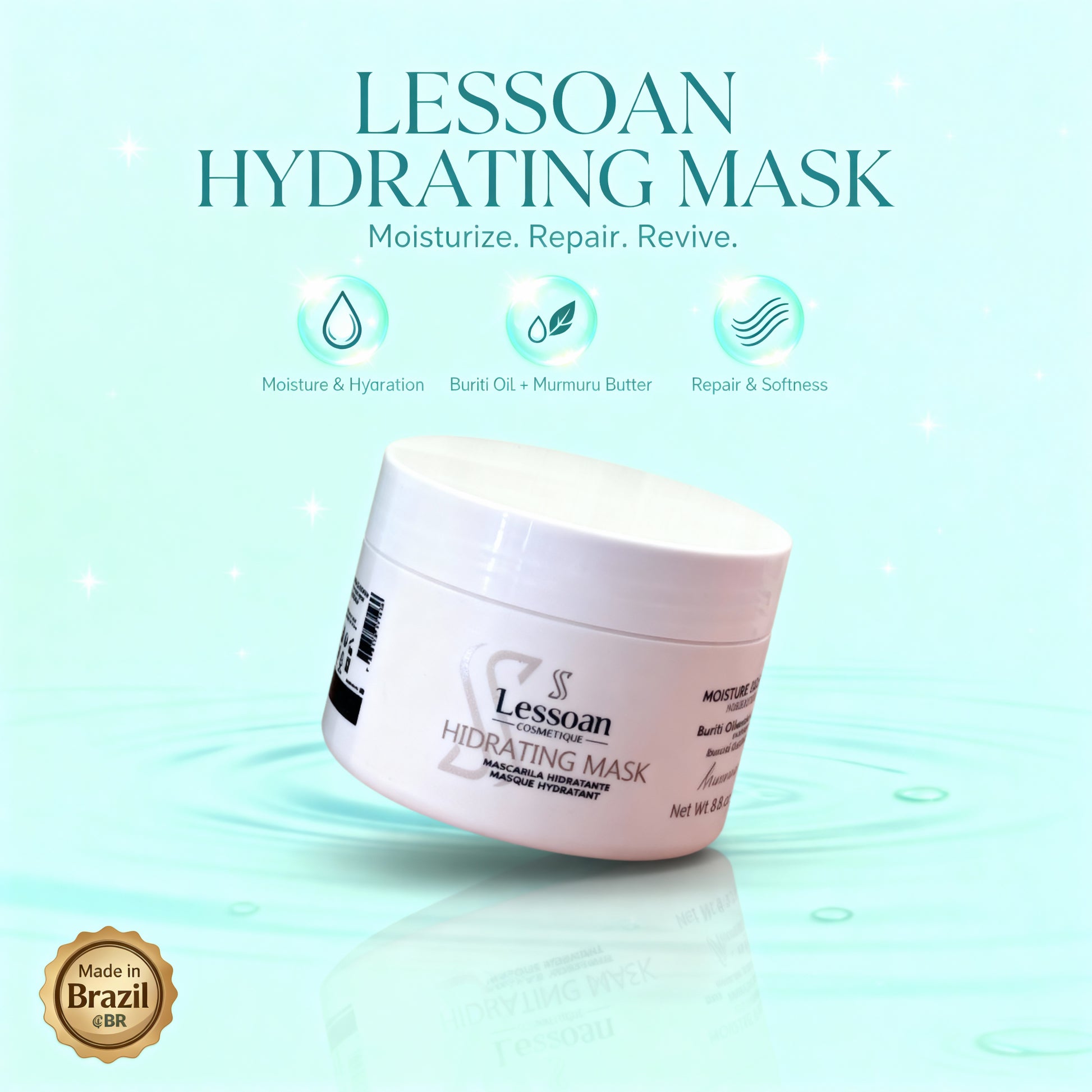 Lessoan Deep Repair Hair Mask is an intensive post-treatment formula designed to rebuild, hydrate, and nourish hair. The mask contains natural active ingredients including Buriti Oil, Murumuru Butter, Hydrolyzed Collagen, Hydrolyzed Keratin, and multifunctional silicones. These components work together to restore the hair’s lipid layers, seal cuticles, and improve softness, shine, and smoothness.