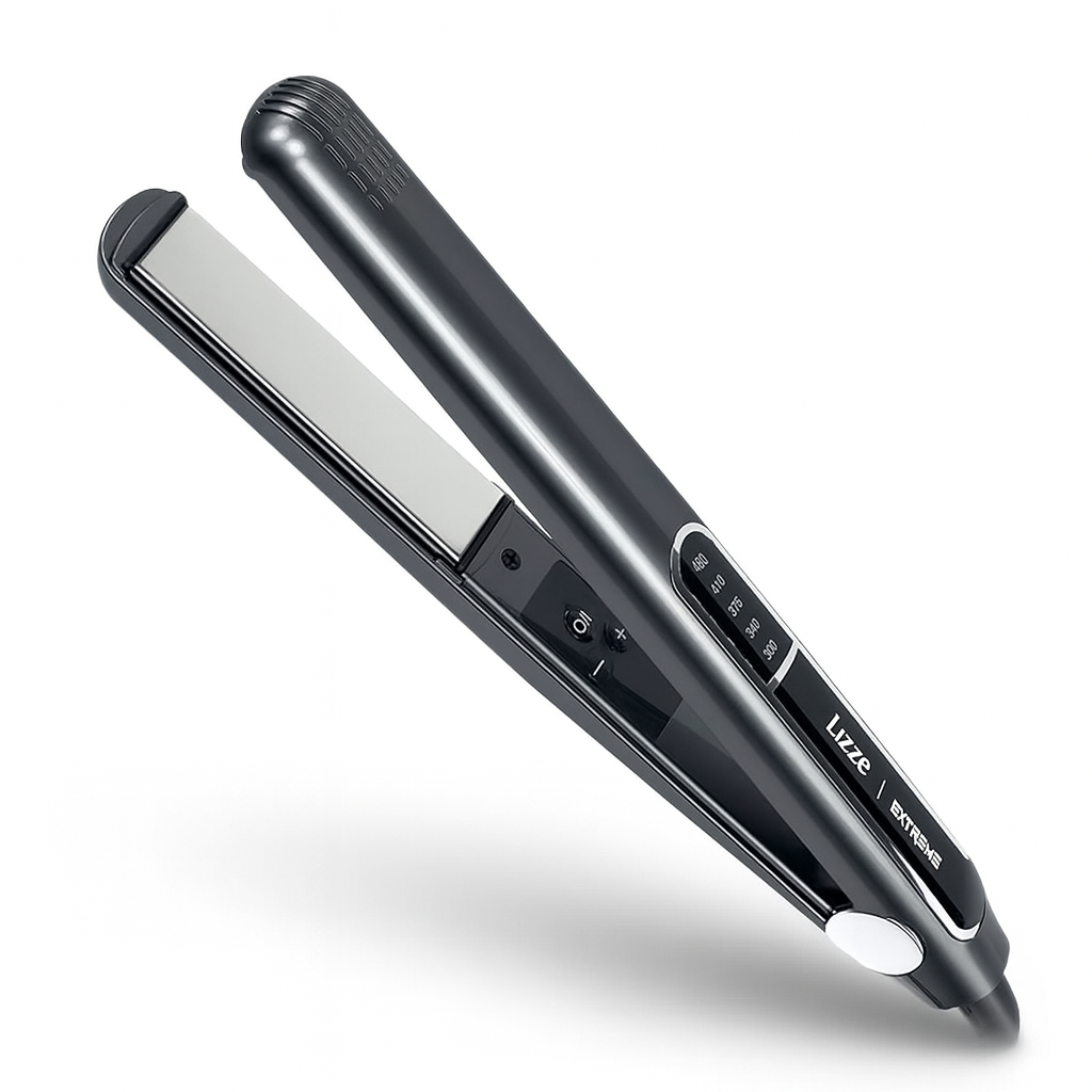 The Lizze EXTREME Professional Titanium Hair Straightener is a high-performance styling tool designed for salon-quality results. It features titanium plates that heat up to 250°C (480°F), providing fast and even heat distribution for smooth, frizz-free styling on all hair types, from fine to coarse.