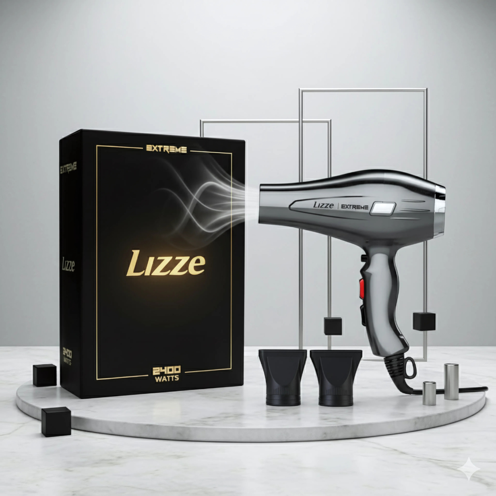 The Lizze Extreme Professional Hair Dryer is a high-performance styling tool equipped with a 2400W AC motor for fast and efficient drying on all hair types. It features advanced ionic technology to reduce frizz and enhance natural hair shine, resulting in a smooth and polished finish.